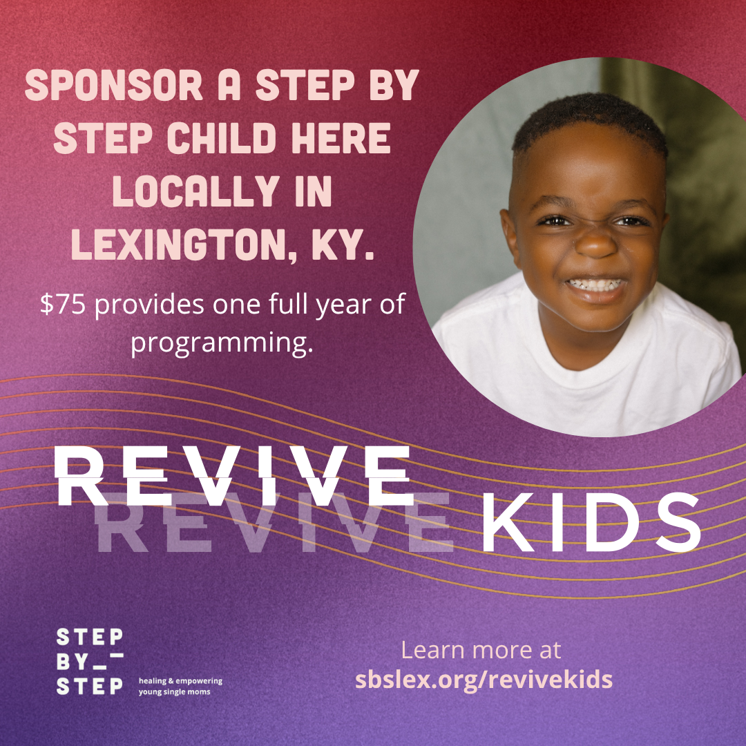Our 2025–2026 season launches this September, and our Revive Kids ministry is growing to meet the needs of the children we serve. Every Thursday night, Step By Step (SBS) provides transportation, dinner, and life-giving programming for young single moms ages 12–24—and while moms grow in leadership and life skills, their children are also being deeply invested in through Revive Kids.